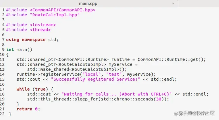 我们在主函数中创建一个RouteCalc的对象, 然后将该对象注册到runtime中,这样服务端的代码就基本完成了。