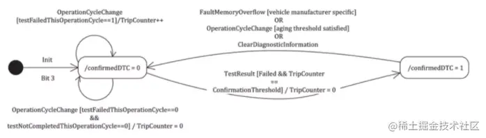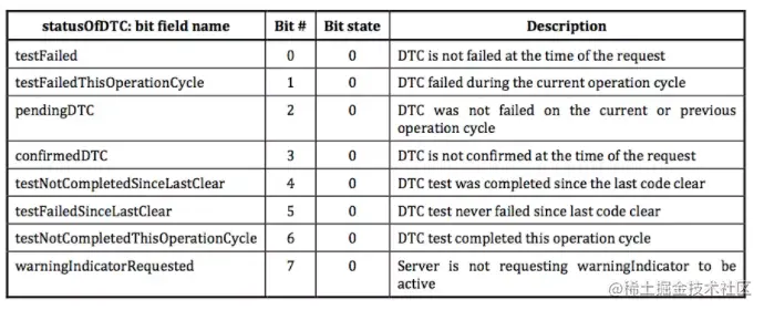 - Bit3: 请求时刻DTC被确认,一般确认是在一个点火周期内发生错误1次;