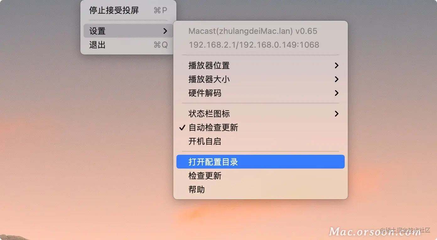 Macast for Mac是一款极简的dlna投屏软件,Macast Mac版可以帮助用户接收来自同一局域网的DLNA投放,这款Mac投屏软件可以将手机中的视频、图片或音乐推送到电脑中,Macast Mac版是支持主流视频音乐软件和其他任何符合DLNA协议的投屏软件,喜欢的朋友快来看看吧!