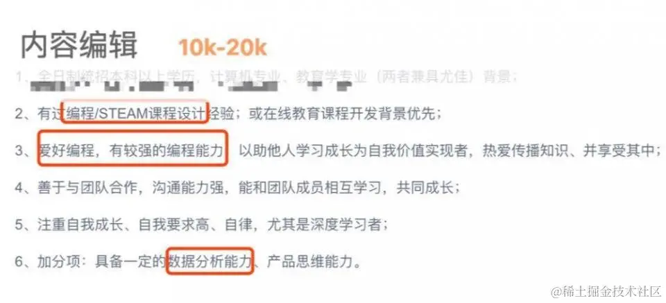 回到开头的那位大四学生,她专业课成绩不错,拿过几次奖学金,她认为凭借自己的努力的,肯定能找到一份心仪的工作。然而最近在准备秋招简历时,她才发现:“原来自己好差劲,大学四年没有拿的出手的简历内容,更没有和HR谈薪资的底气。“因为她看到很多公司秋招信息后,惊讶的发现,很多大厂岗位,尽管跟程序员的职位无关,仍旧在招聘JD里都写上了:熟悉python编程, 这样的条件。这个要求更是让她觉得自己一无是处了。