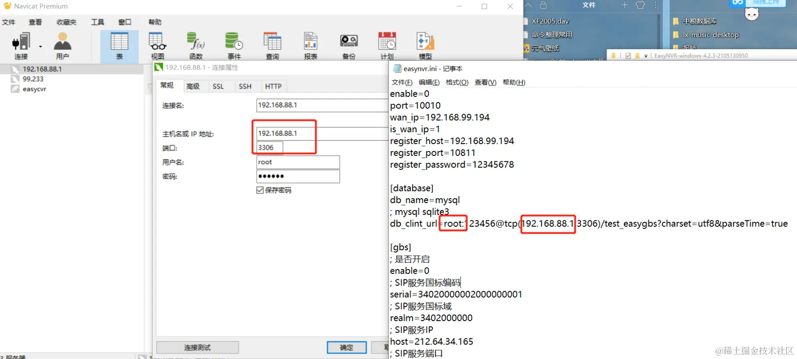 发现无法登录,mysql的数据库在EasyNVR的服务器不能通信。