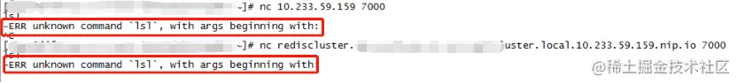 用 nc 命令对 redis 集群进行连接测试:向服务端发送 keys * 命令时,7000 端口返回的是 HTTP/1.1 400 Bad Request,其他三个端口是 redis 返回的 -NOAUTH Authentication required。