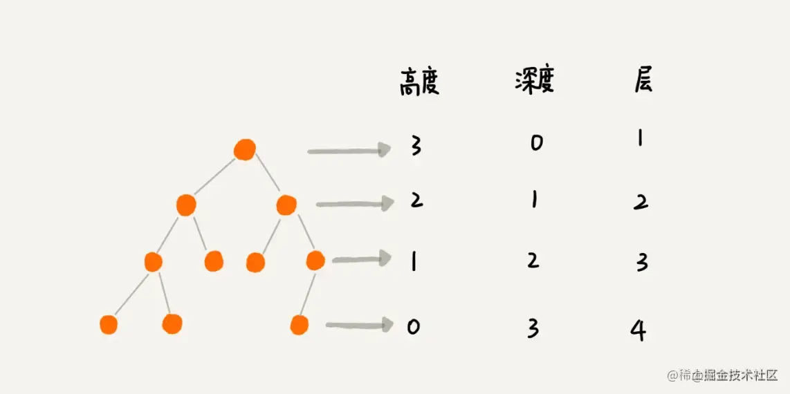 - 节点的高度 = 节点到子叶节点的最长路径(边数)