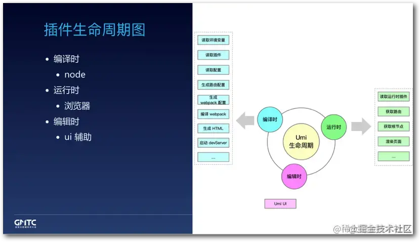 大部分插件体系只会考虑 node 编译时,而umi插件加上运行时和编辑时的支持,赋予了插件更大的能力。