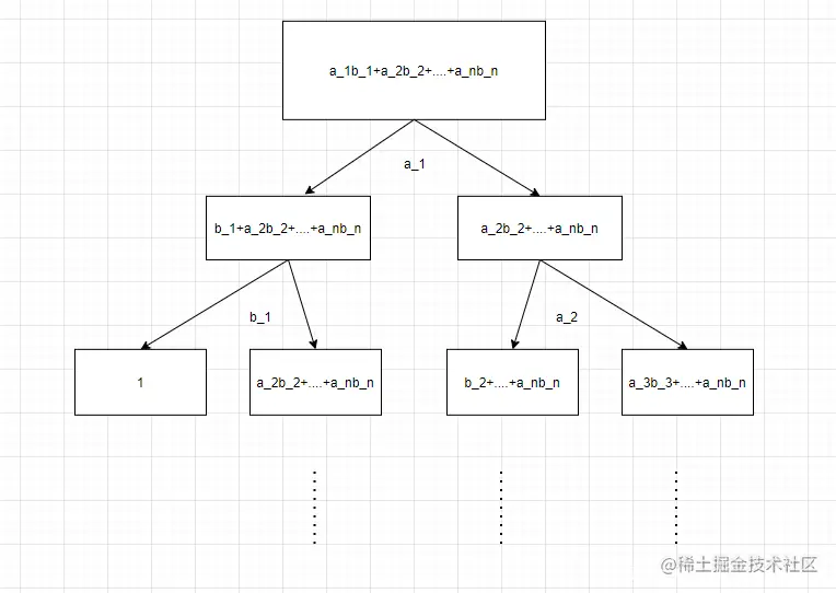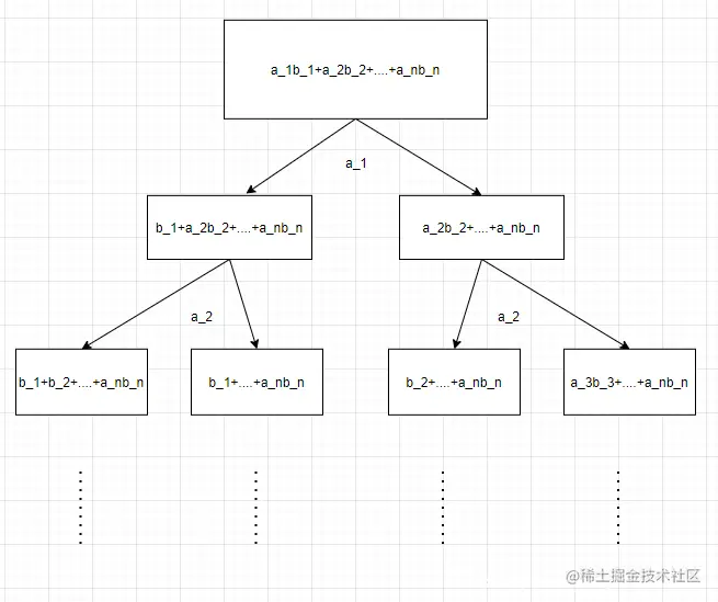 如图所示,当我们先判断a_1,a_2,a_3…..,然后判断b_1,b_2,b_3….我们会发现,一直判断到b_1才会出现第一个可能的输出,然而在n次判断后,这一次判断的分支会存在2^(n+1),毫无疑问,这是一个巨大的工程量。而当我们先判断a_1b_1时,无疑会减少一个巨大的分支。