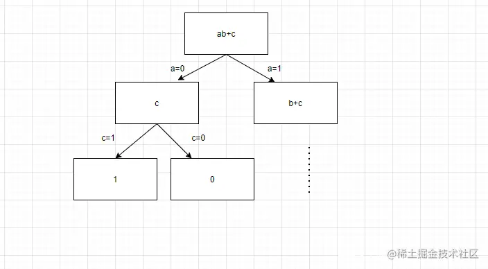 我们目标是结果返回为真,对于每一个逻辑单元,由于是and逻辑,所以我们需要所有输入在逻辑单元中是真的表述,也就是对于a ^b来说a我们假设为1,b假设为0使得a为1,^b为1。这一算法会基于某一个逻辑单元所拥有的输入个数决定复杂程度