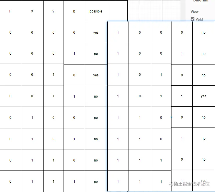 首先根据前面F和XbY的关系,我们得到X为1时,F为1,也就是不存在01的输入