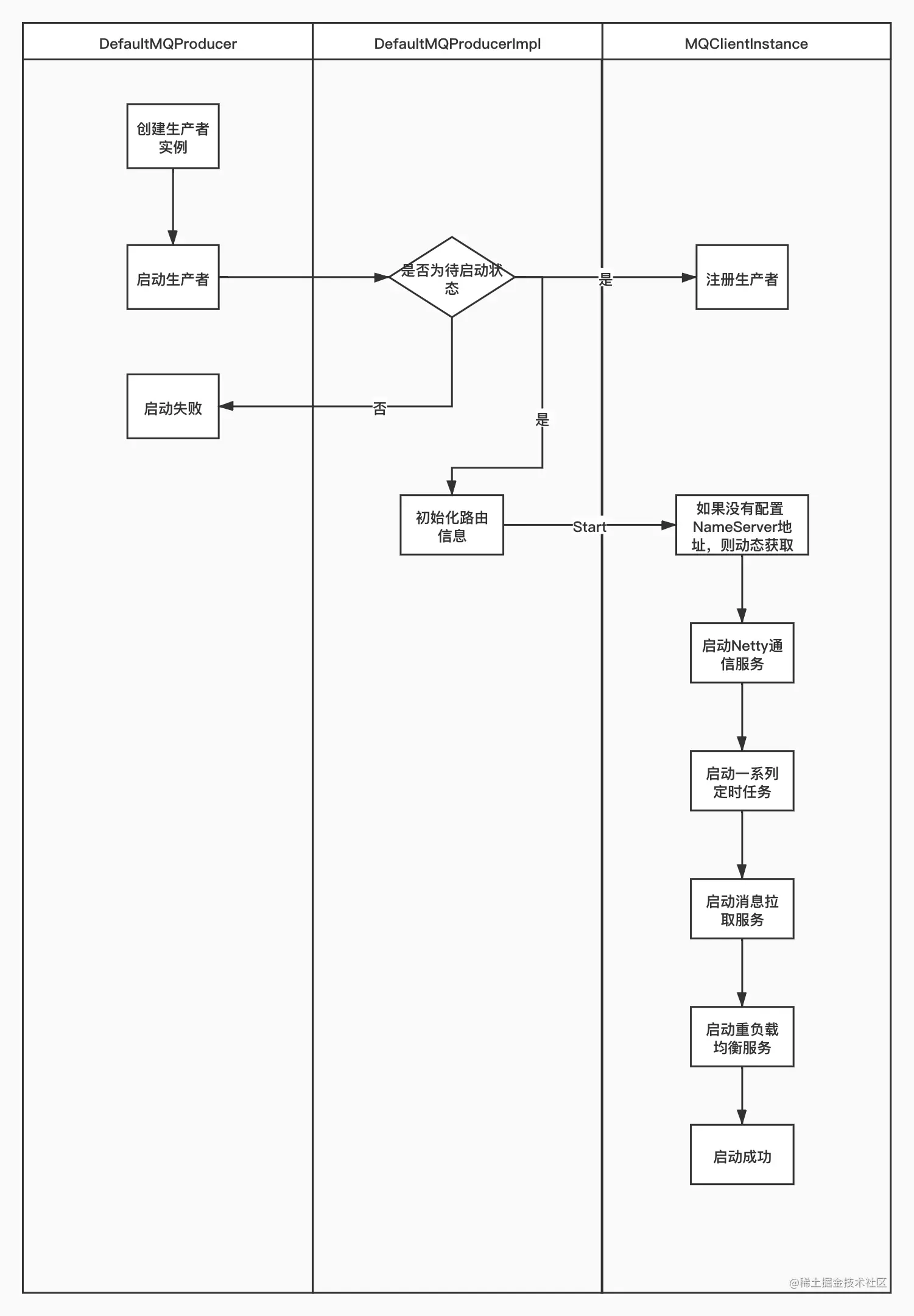 注意:由于生产者与消费者底层都是通过 MQClientInstance 类与 Broker 服务通信,而消息拉取服务,重负载均衡服务都是针对消费者端的服务,因此即使生产者启动了这两个服务,实际也不会生效。