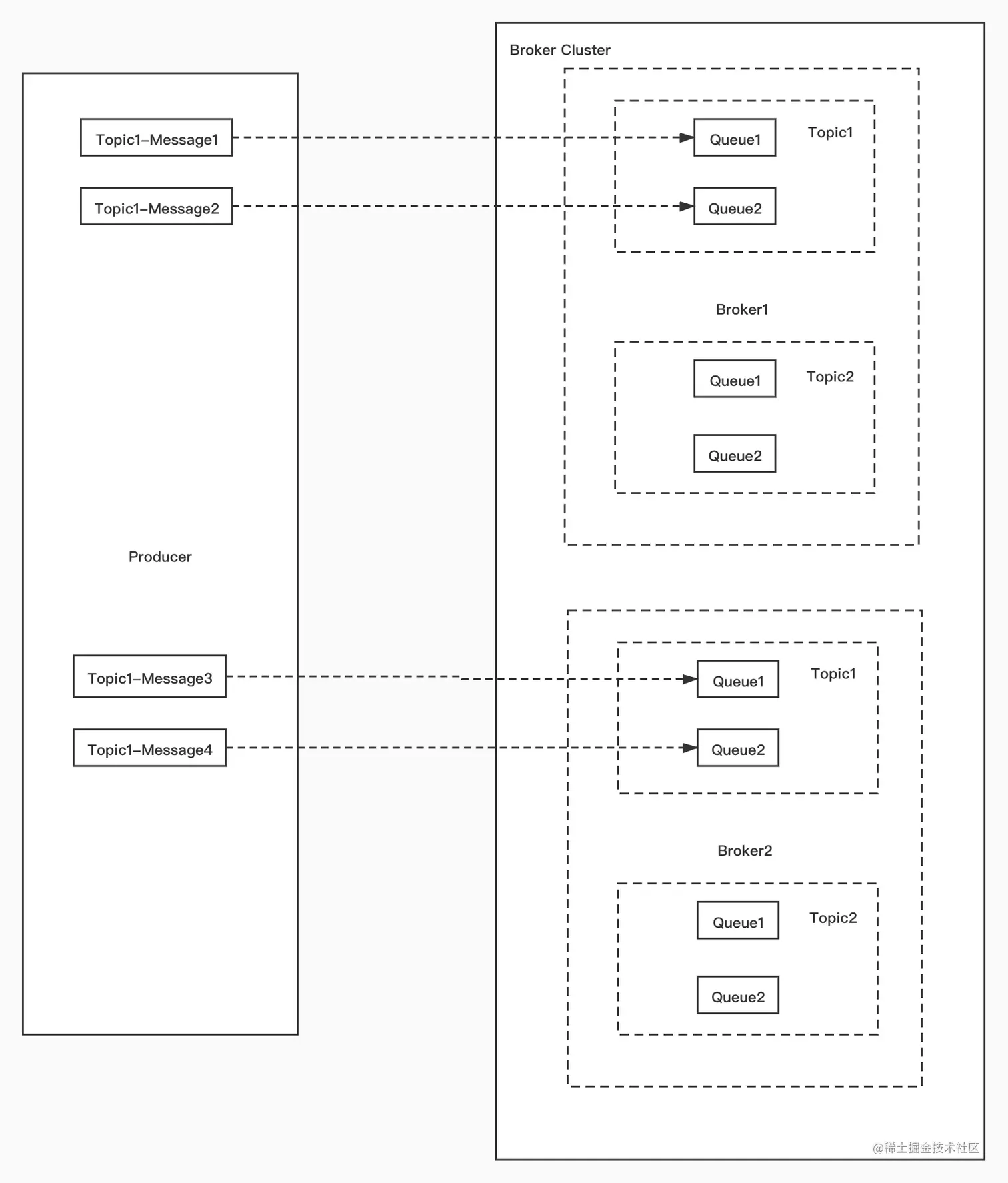 宗旨就是均匀地把消息发送到各个 Broker 中的消息队列。