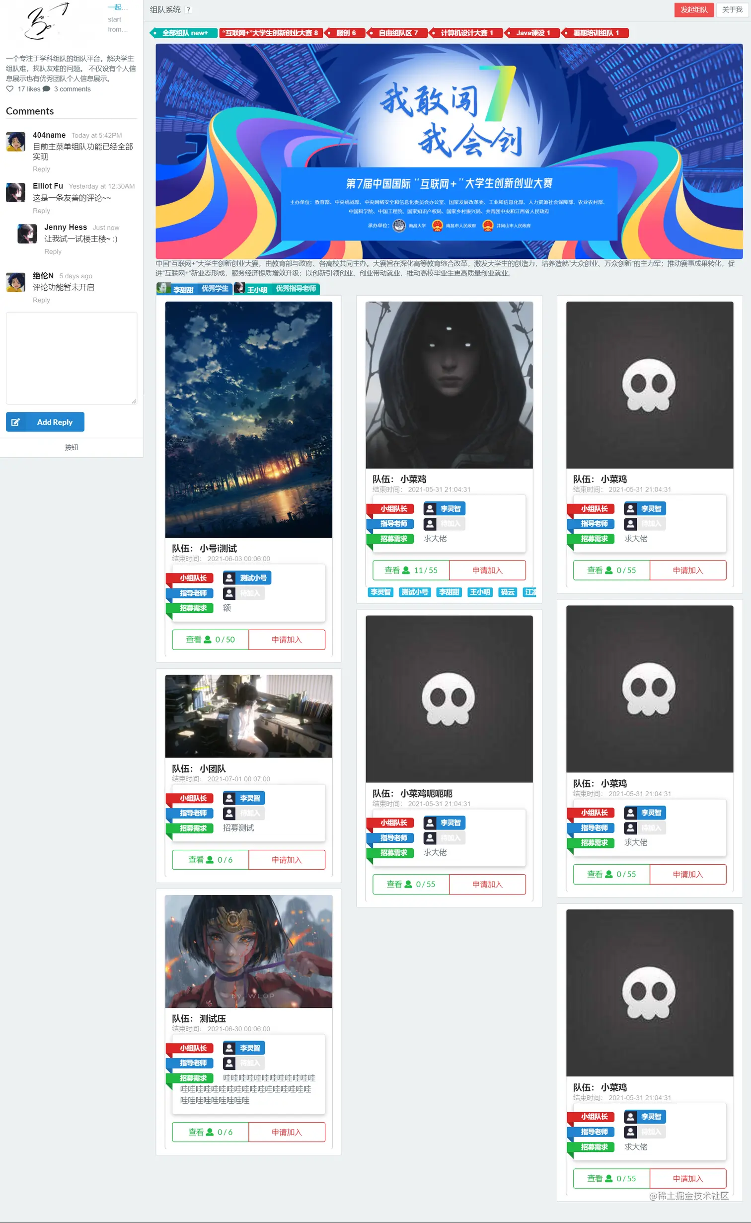 【目前开放访问:前台链接】(没做完,但组队功能做完了)