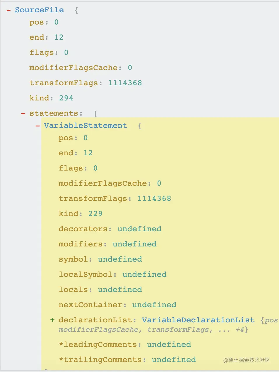 而 typescript 的 AST 是这样的: