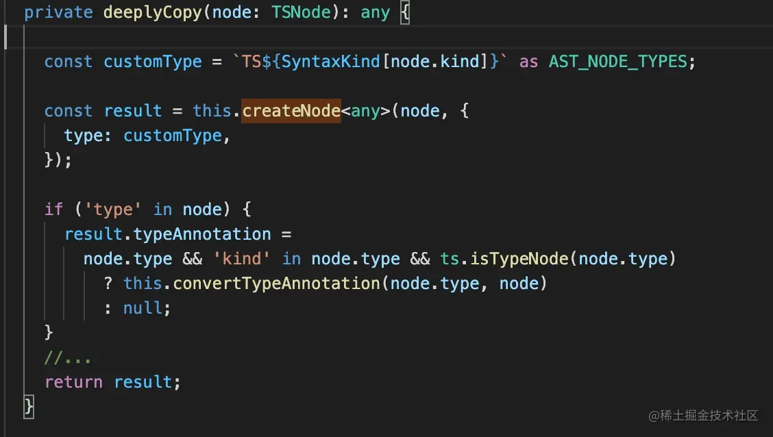 其中对于 estree 中没有的类型相关的 AST,则直接复制,并在 AST 名字前加个 TS。
