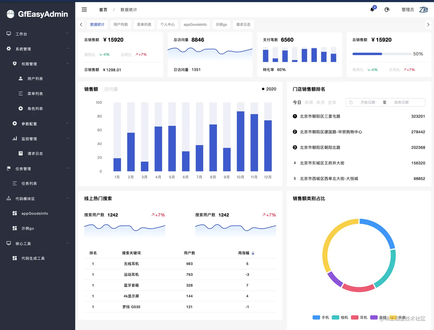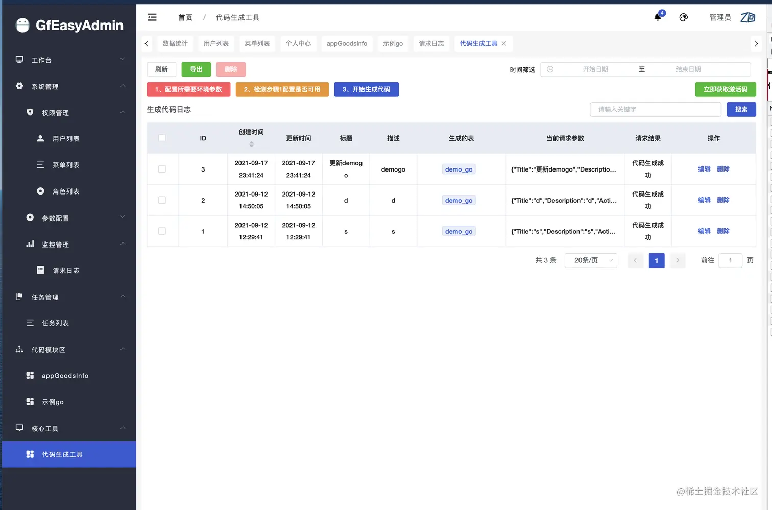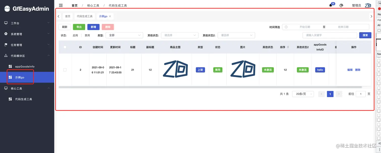 这是生成的界面,有各种筛选功能、导出功能、CRUD功能