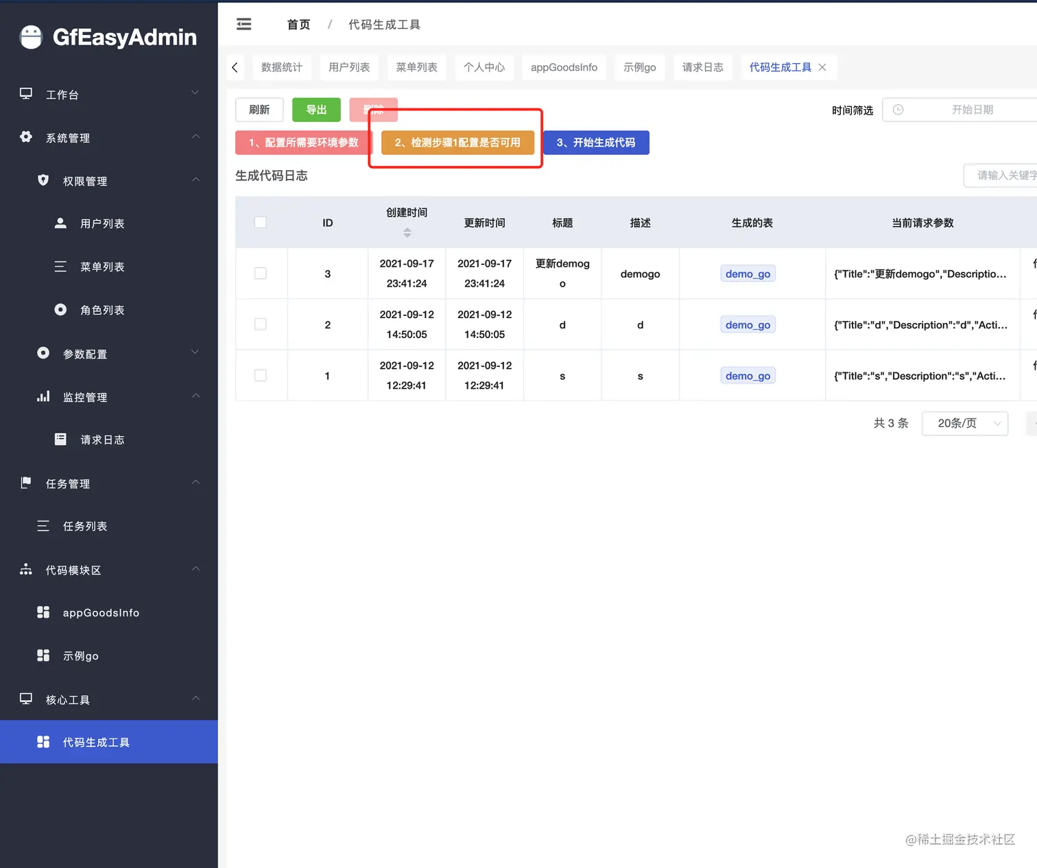 2.2、打开后台系统,点击核心工具=》代码生成工具