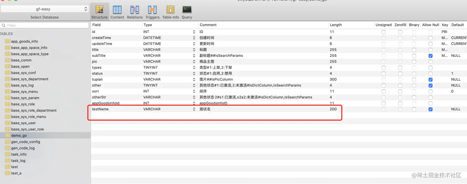 仅仅需要修改下app/model/DemoGoModel/DemoGo.go的Entity、AddReqParams、UpdateReqParams即可