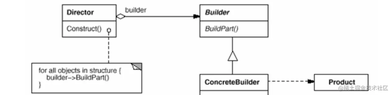 通过RateLimiter类图可见,RateLimiter类不仅承担了具体实现类的创建职责,同时也确定了被创建出的实际类可提供的方法。标准创建者模式UML图如下所示(引用自百度百科)