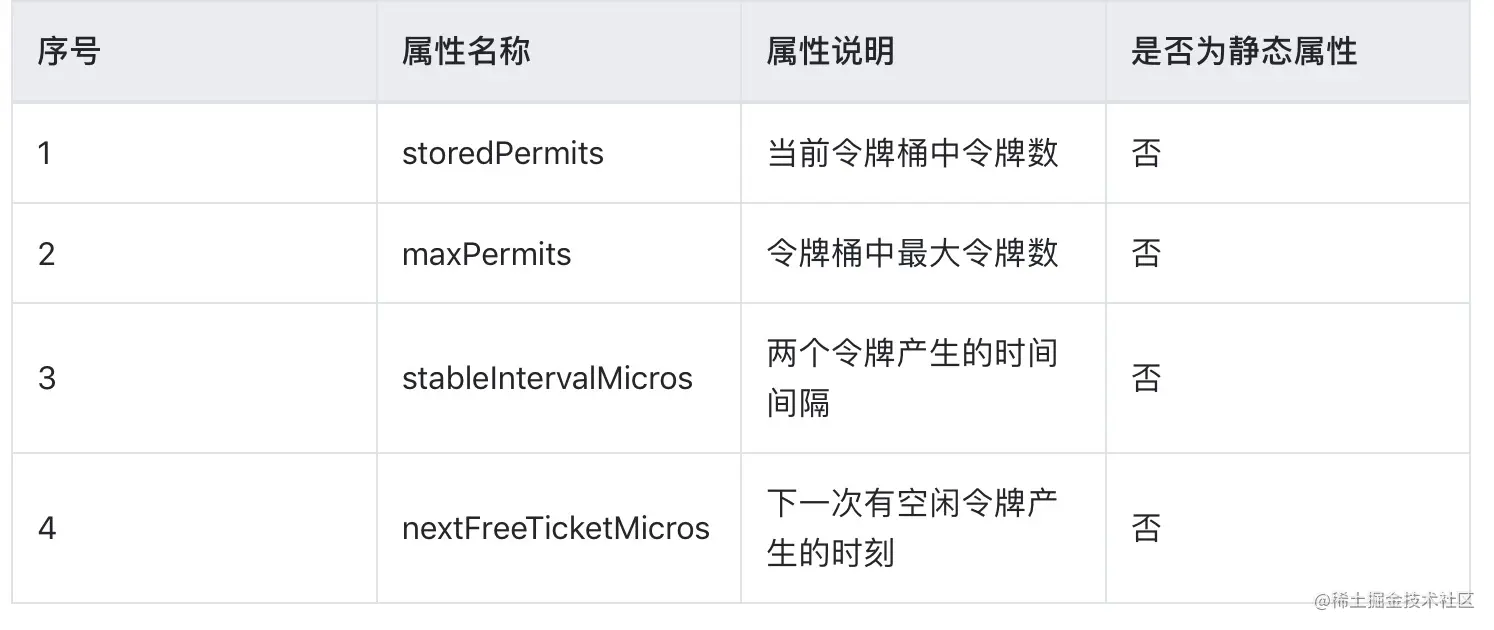 - 其中maxPermits属性上文已经出现过,表示当前令牌桶的最大容量。