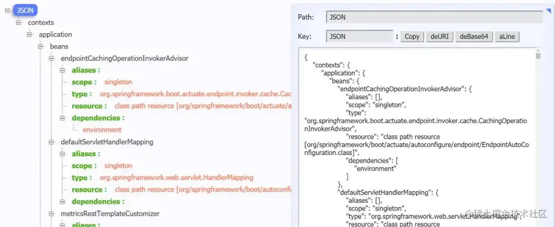 访问http://localhost:8080/actuator/beans,返回如下: