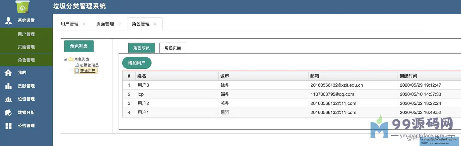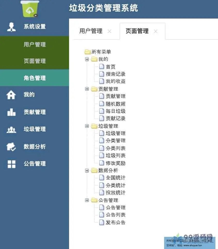 系统设置-用户管理、页面管理、角色管理;