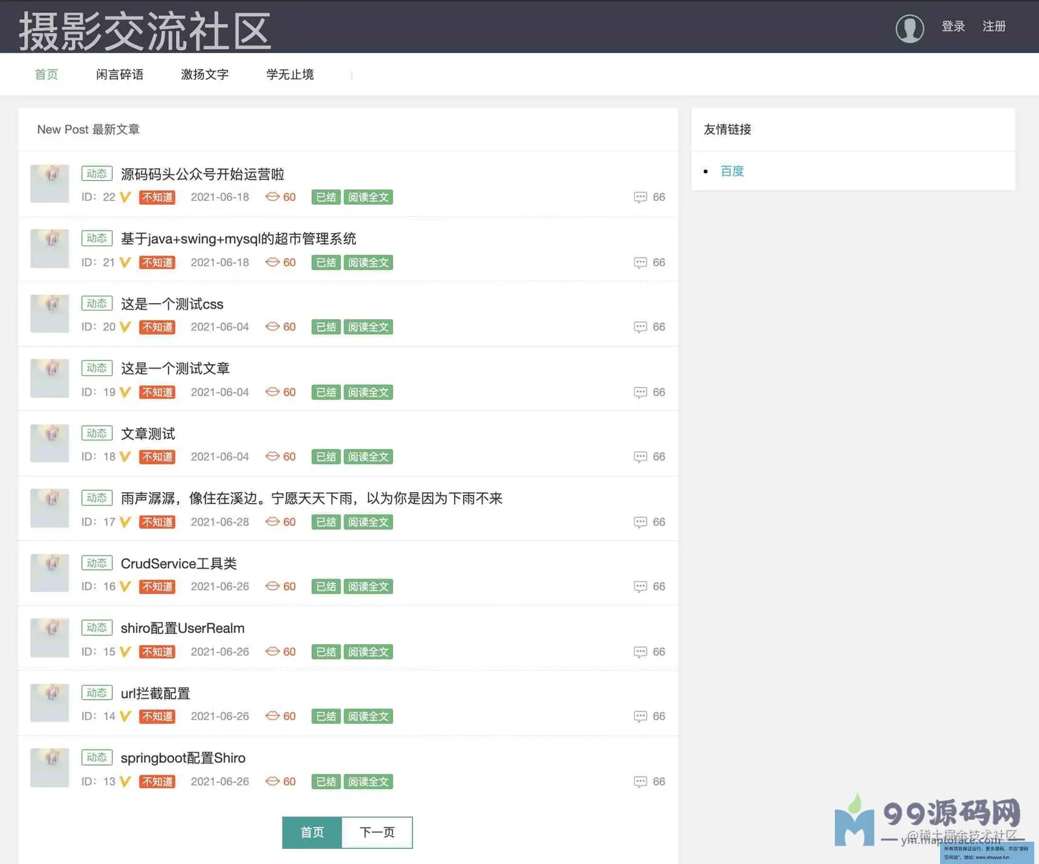 首页,查看文章,注册账号,登录,管理本人写的文章,管理本人的文章,评论文章等功用。