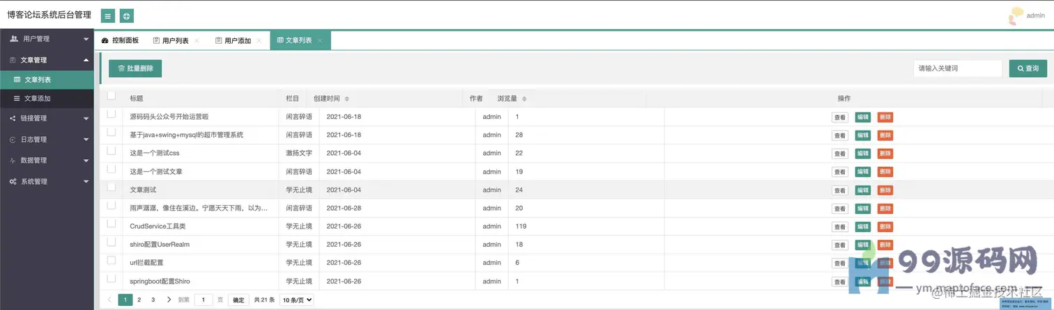 登录,用户增删改查,文章增删改查,链接增删改查,日志查看,查看近期数据,类别管理等功用。