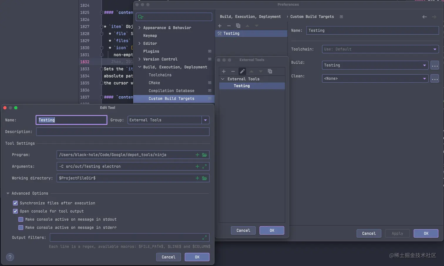 在想使用 CLion 进行调试时,请先确保你执行成功过 ninja -C out/Testing electron 命令 “先不要急着去打开 CLion,先在根目录(src同级目录)里创建一个 CMakeLists.txt 文件,内”如下: