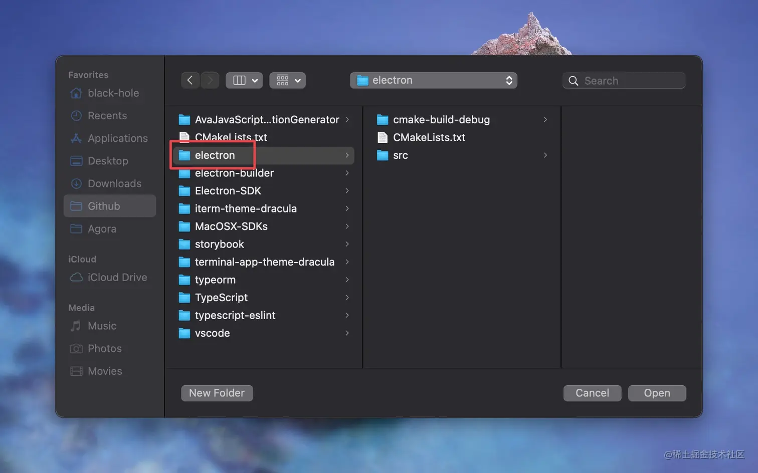 然后再使用 CLion 打开项目,需要注意的是项目的根目录,就像下图一样: