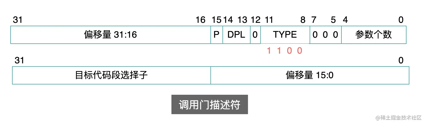 目标代码段选择子:最终调用的目标代码段的选择子,需要用这个选择子到 GDT 中寻找目标代码段的基地址;