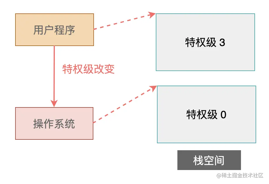 一旦引入了特权级别,上面这样的调用方式就行不通了。