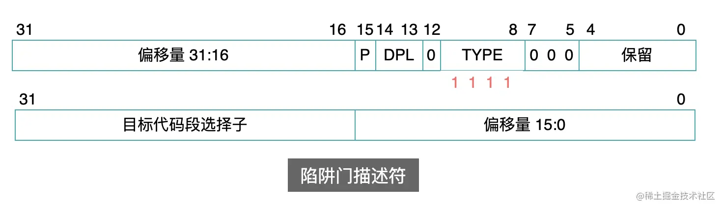 门描述符与之前介绍的段描述符本质是一样的,都是用来描述一个代码段的信息,只不过门描述符增加了一层间接性。