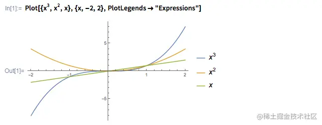 生成多项式函数的二维曲线:(区间 {x,min,max} 定义了绘图范围.)