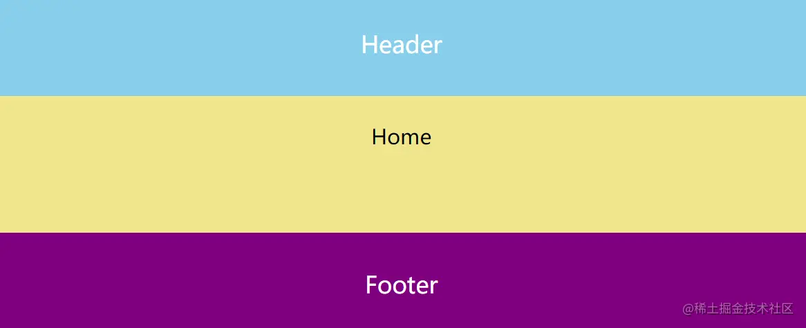 基础代码实现之后,我们就能看到对应的效果了,但是,按照正常的编码逻辑, header 和 footer 应该属于公共部分,中间部分无论展示什么内容,头和尾都是需要展示的。