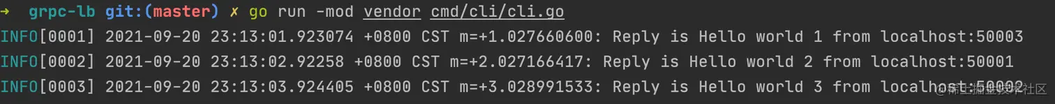 终端3: go run -mod vendor cmd/svr/svr.go -port 50003