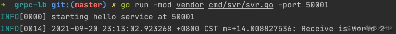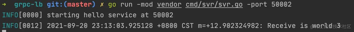 终端2: go run -mod vendor cmd/svr/svr.go -port 50002