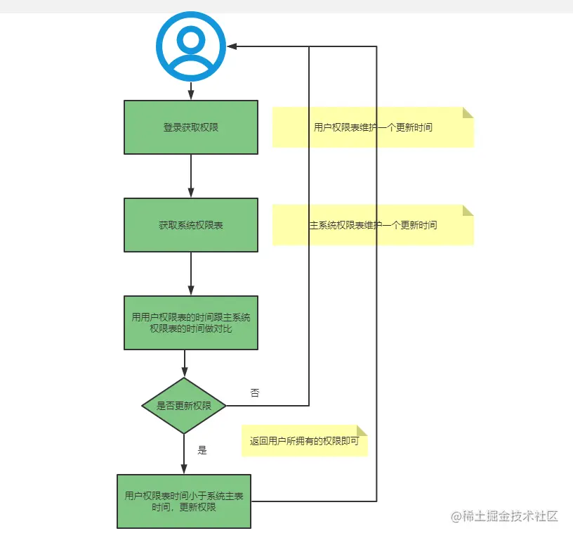此方案虽然解决了每次添加新权限需要执行脚本,但不可避免用户每次登录获取权限时都需要使用自身的权限时间跟系统权限时间做比对。