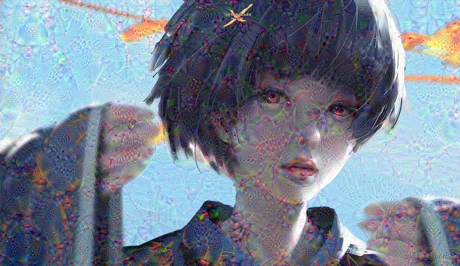 然后网络将识别到的复杂特征组合起来形成完整的解释,并将这些信息反向传播到网络,每个神经元再显示出它想增强的模式或特征。通过以上过程,我们就可以迫使神经网络在图片中产生一些原本不存在的内容,即达到了梦幻的效果~