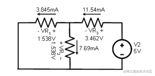 仅用 5 伏电池分析电路,我们得到另一组电压和电流值: