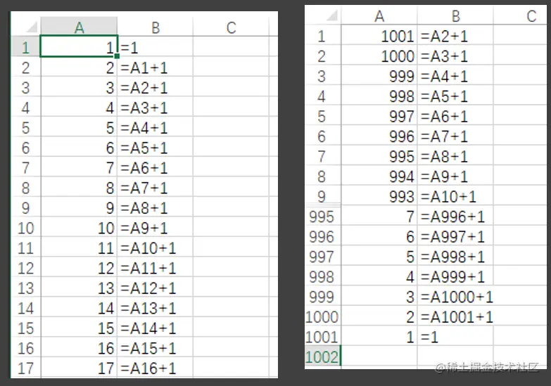 右图中是是一个逆向计算,上一行单元格的内容依赖下一行单元格的内容,按需计算需要计算1000步,这时按需计算会比图计算慢很多。
