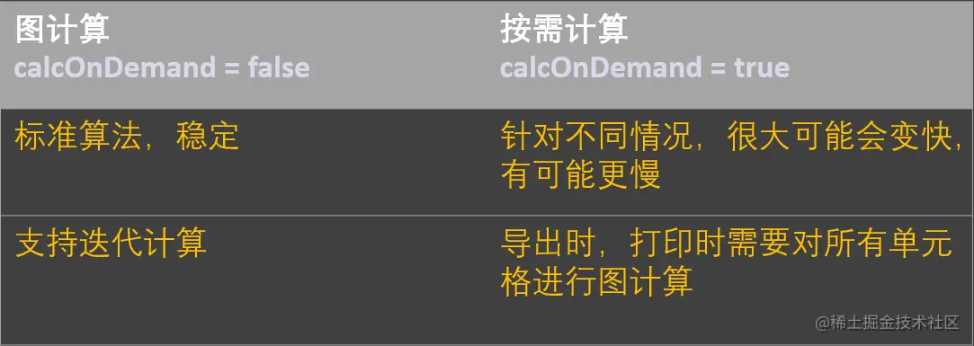 所有的单元格计算内容就全部为大家介绍完毕了,我们一起回顾一下本章节内容:计算链就是将一个个单元格计算串联起来,分为普通计算和迭代计算。而这里我们介绍了两种不同的计算方式——图计算和按需计算,在面对不同情需要选择采用不同的计算策略。计算链在整个计算过程中不像单元格的计算那么明显,但是却比单元格的计算更加复杂。