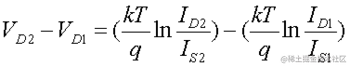 在上图中,绘制了 2mA 和 1mA 曲线之间的差异以及 5mA 和 10mA 曲线之间的差异。这两个结果完全重叠。如果我们更仔细地检查二极管电压方程,其原因就很明显了。