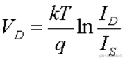 (正向偏置)二极管电压V D的表达式如下: