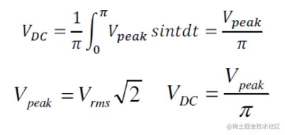 给定正弦输入,半波整流器的输出直流电压可以用以下理想方程计算: