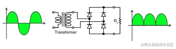 全波整流器是一种将交流电压波形的两个半周期转换为连续的同极性电压脉冲序列的电路。由此产生的输送到负载的直流电不会“脉动”那么多。