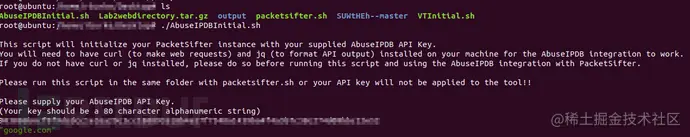 现在,切换到项目根目录下,并运行AbuseIPDBInitial.sh,然后提供你的AbuseIPDB API密钥(80位)。