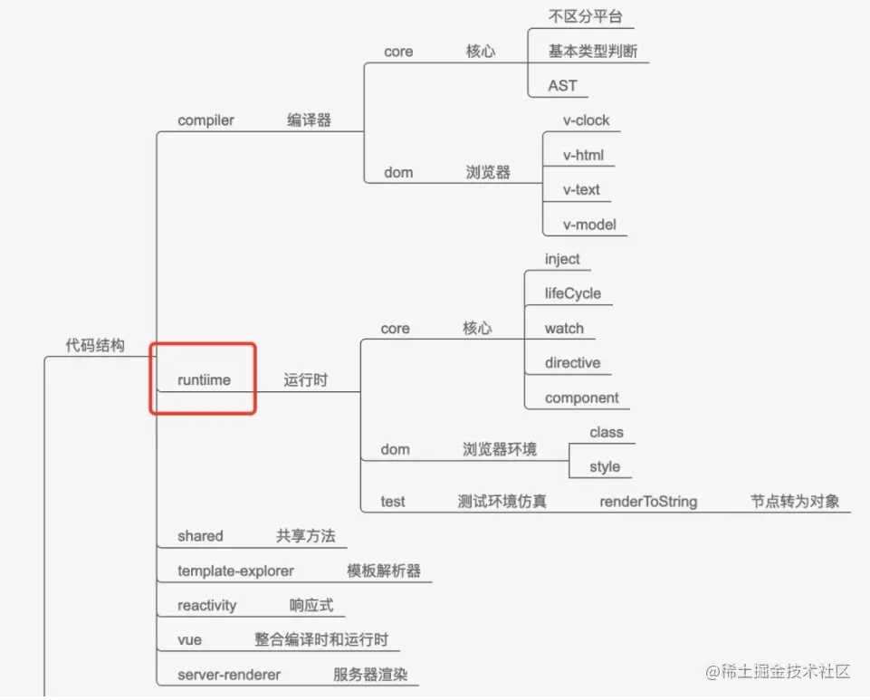 vue3整体分为三个部分:程序运行时模块、响应式模块、程序编译模块,咱们今天就只先看程序运行时模块,看一下vue3在初始化时的一个流程。