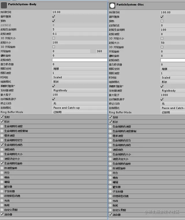 粒子主要分为两个:动态的火光以及正中心耀眼的白球【百科说太阳其实是白色的】,使用的属性如下图: