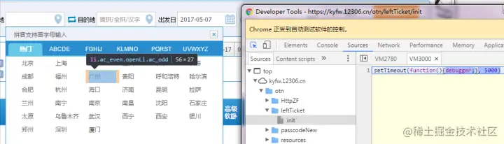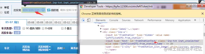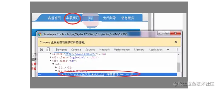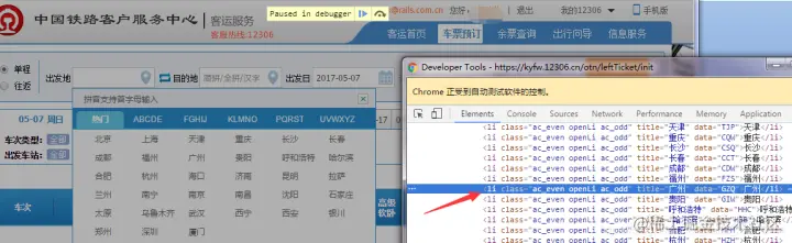 2.登录12306 1)在chrome界面,按F12快捷键,弹出chrome的调试工具 2)找出登录按钮的id和username、password的id