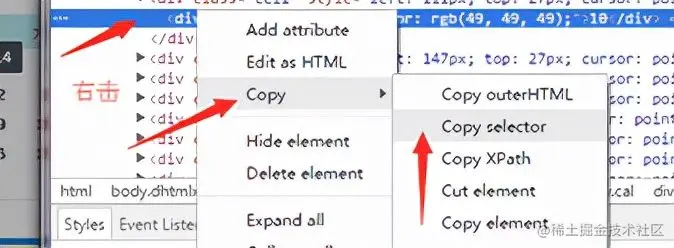5.右击代码位置,选择copy selector