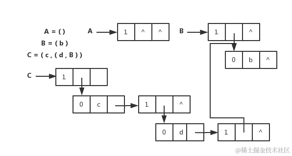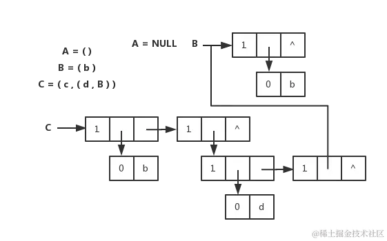 // ptr 是表结点的指针域,prt.hp 和 ptr.tp 分别指向表头和表尾