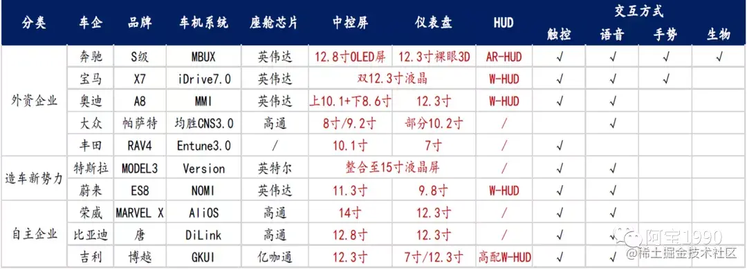 座舱芯片以英伟达和高通为主,特斯拉等新势力车企设计风格突出,中控盘与仪表整合一。